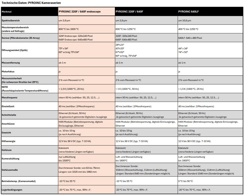 PYROINC is a specialized and extremely robust thermal imaging camera series for combustion chambers, measuring high temperatures in real time between 400 °C and 1,800 °C (752 °F – 3,272 °F). The motorized focusable borescope optics are protected by a sapphire window. The camera’s slim and robust stainless steel probe cooling jacket can also be additionally cooled with air or water.